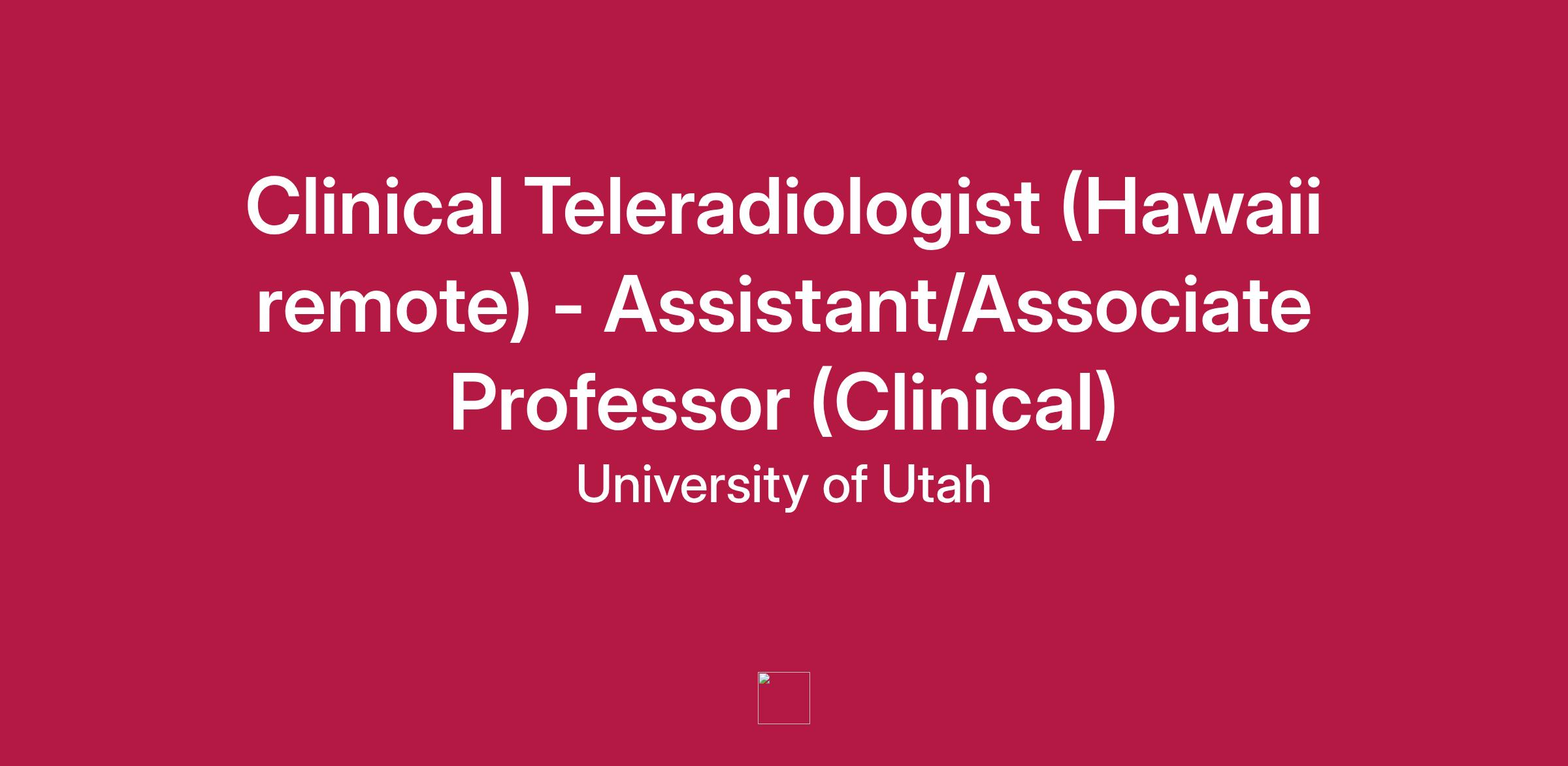 Are you a clinical teleradiologist looking for an exciting opportunity to work in Hawaii? The University of Utah Department of Radiology and Imaging Sciences is seeking talented individuals to join our Teleradiology Section. As part of this role, you’ll have the flexibility to provide clinical services from the comfort of your own residence using our cutting-edge home PACS technology, primarily from 5 pm to 2 am Hawaii Standard Time (9 pm to 6 am Mountain Standard Time).
