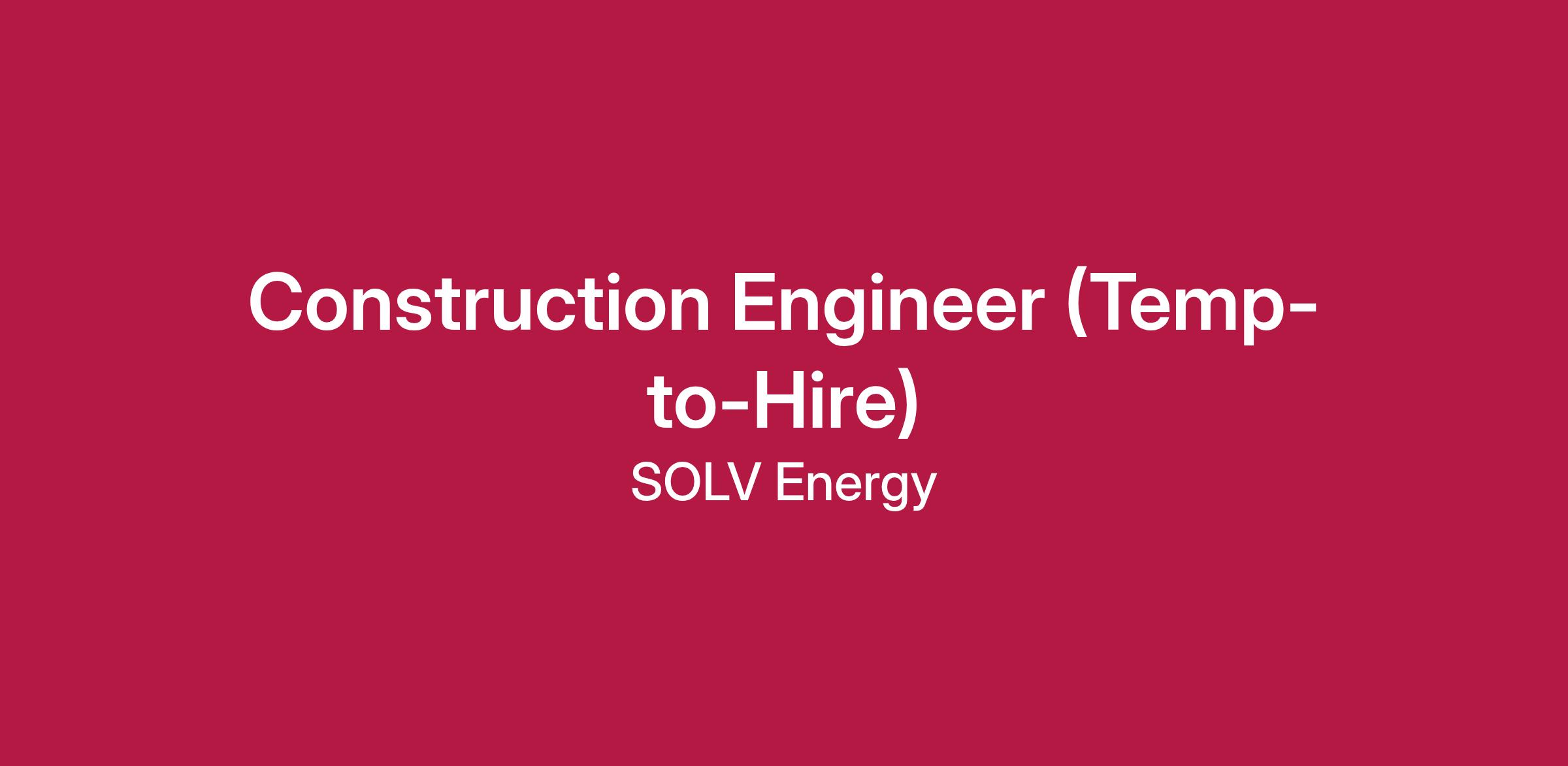 The Construction Engineer will support EPC operation related engineering concerns and general guidance on best practices as observed from start of construction to end of SOLV’s warranty period.
