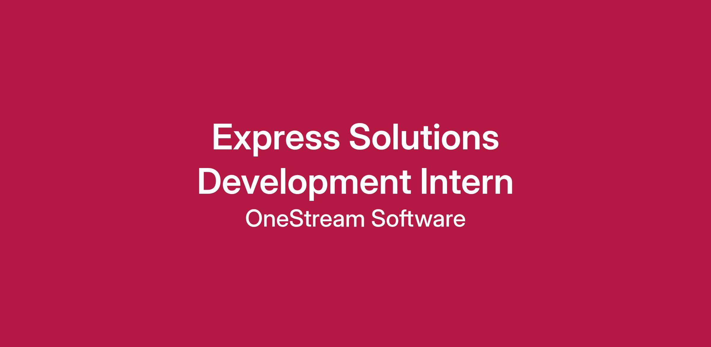 OneStream is seeking motivated candidates for its 2026 internship program. Interns will gain hands-on experience, collaborate with professionals, and work on impactful projects in a fast-paced environment. Our internship is intended for rising seniors and graduate students enrolled in a degree-seeking program, with graduation expected after the internship program concludes. If you're eager to learn and ready to take the next step in your career, we’d love to hear from you. The Express Solutions Development Intern plays a role in the development and quality assurance of solutions within the Express Solutions portfolio. This position is responsible for delivering innovative, high-quality solutions that address complex business challenges while collaborating closely with cross-functional teams to enhance organizational capabilities and support strategic initiatives.