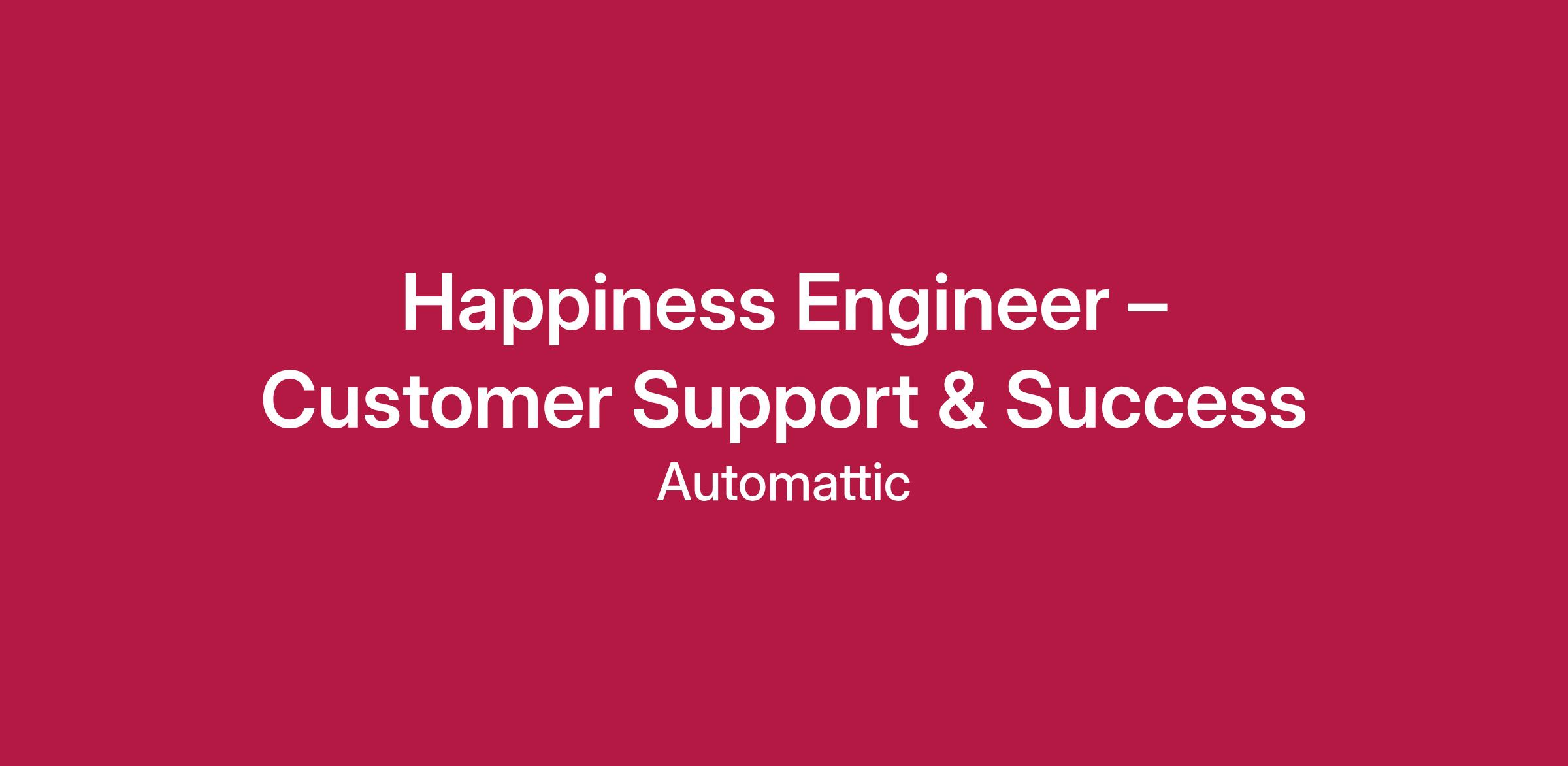 We view support as a long-term career, not a stepping stone. Some of our most valued HEs have been here for a decade or more. We also strongly believe in growing and challenging our employees, and we promote internally for leadership (including senior leadership). In addition to leadership, Happiness work spans a broad range of functions, and new teams and roles are being introduced on a regular basis. In this role, you’ll have many opportunities to build new skillsets and to work on new initiatives with product, marketing, talent, data, and more. Our Happiness Engineers have transitioned to roles in every possible capacity, both within Happiness and all across Automattic.