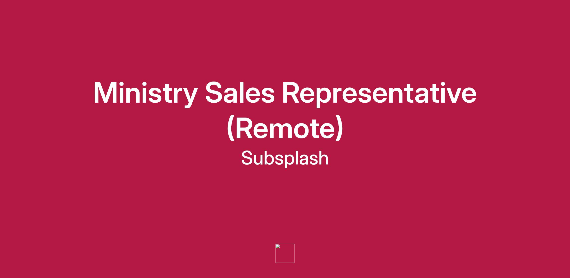 As a Ministry Sales Representative , you will report to the Sales Manager. The Ministry Sales Representative role is focused on generating new business for Subsplash through identifying organizations that will benefit from Subsplash services, connecting with decision makers there, and demonstrating the value that Subsplash can deliver by helping them achieve their goals. The Ministry Sales Reps are part of a growing team of people who are part super-sleuth, part bloodhound, part evangelist. Together, they find success for Subsplash and our clients by fostering relationships with prospects, identifying market trends and what success looks like for each organization and partnering with them to reach their goals and make more fans of Subsplash. If you like collaborating with a team of motivated, fun, passionate individuals who have a contagious spirit of excitement for their work, then this role is probably the right fit for you!