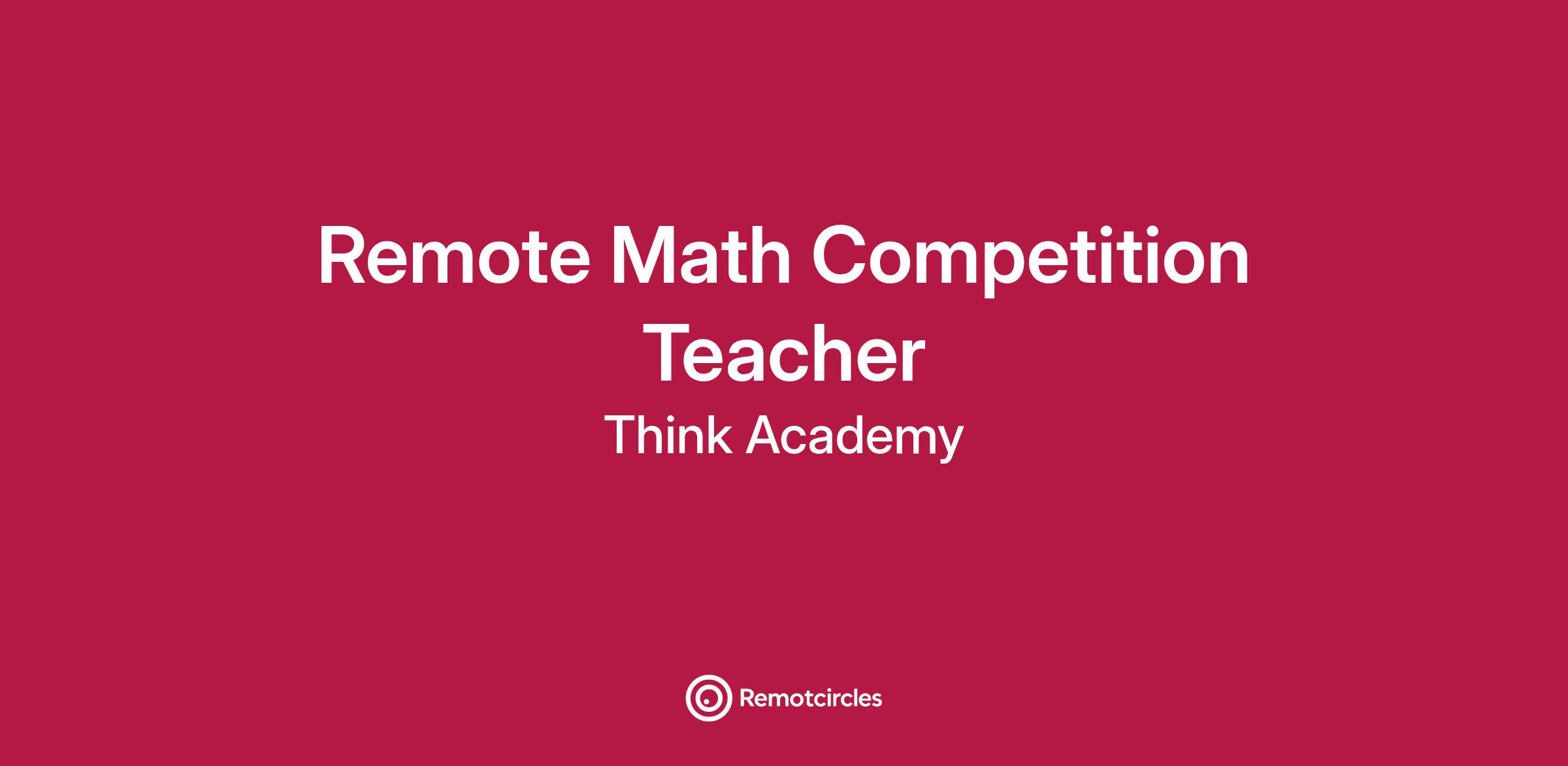 Think Academy U.S. is looking for Remote Math Competition Teacher to work with our higher elementary and middle school students in competition level math (AMC, Math Kangaroo, JMO). Teachers are expected to understand math concepts, prepare classes based on Think Academy's curriculum, deliver engaging and age-appropriate math lessons, explaining concepts, demonstrating problem-solving techniques, and using various teaching methods to meet the diverse needs of students