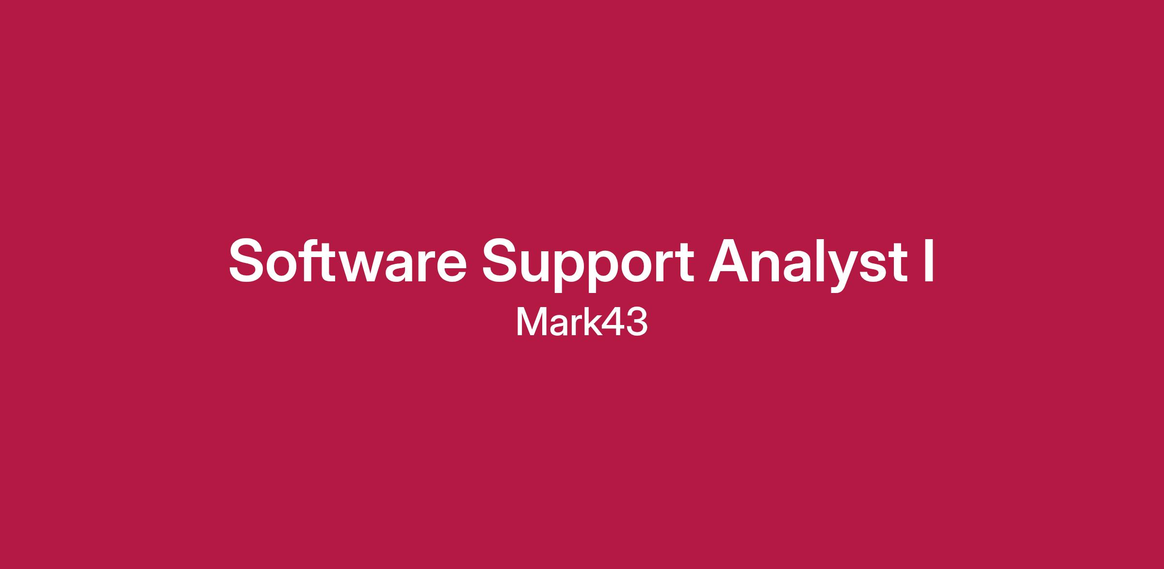 We are looking for a Software Support Analysts to join our team. In this role, you’ll be on the front lines of our customer support efforts, directly interacting with both first responders and civilian staff at public safety agencies to improve their experience and understanding of our products. Support team members collaborate with teams across Mark43 and provide valuable insights into the perspective of our users. Qualified candidates will have strong interpersonal skills, a clear and patient style of communication, and a keen mind for problem-solving. As Mark43 is growing quickly, successful team members will adapt to changing team dynamics and processes.