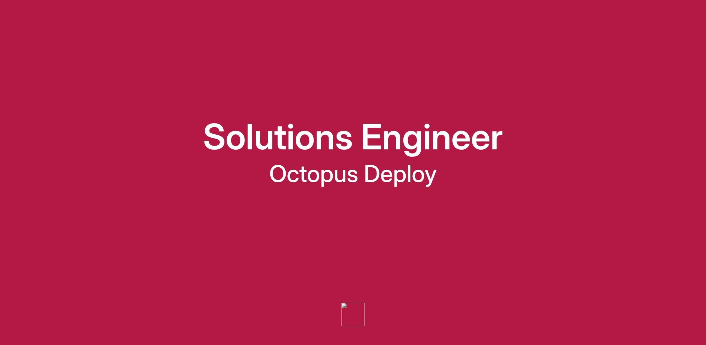 An Octopus Deploy Solutions Engineer is responsible for working with their accounts and customers as their trusted advisor on their technical journey with continuous delivery (CD) at scale—from answering their technical questions and discovering their technical challenges, to demonstrating and proving the value of Octopus Deploy.