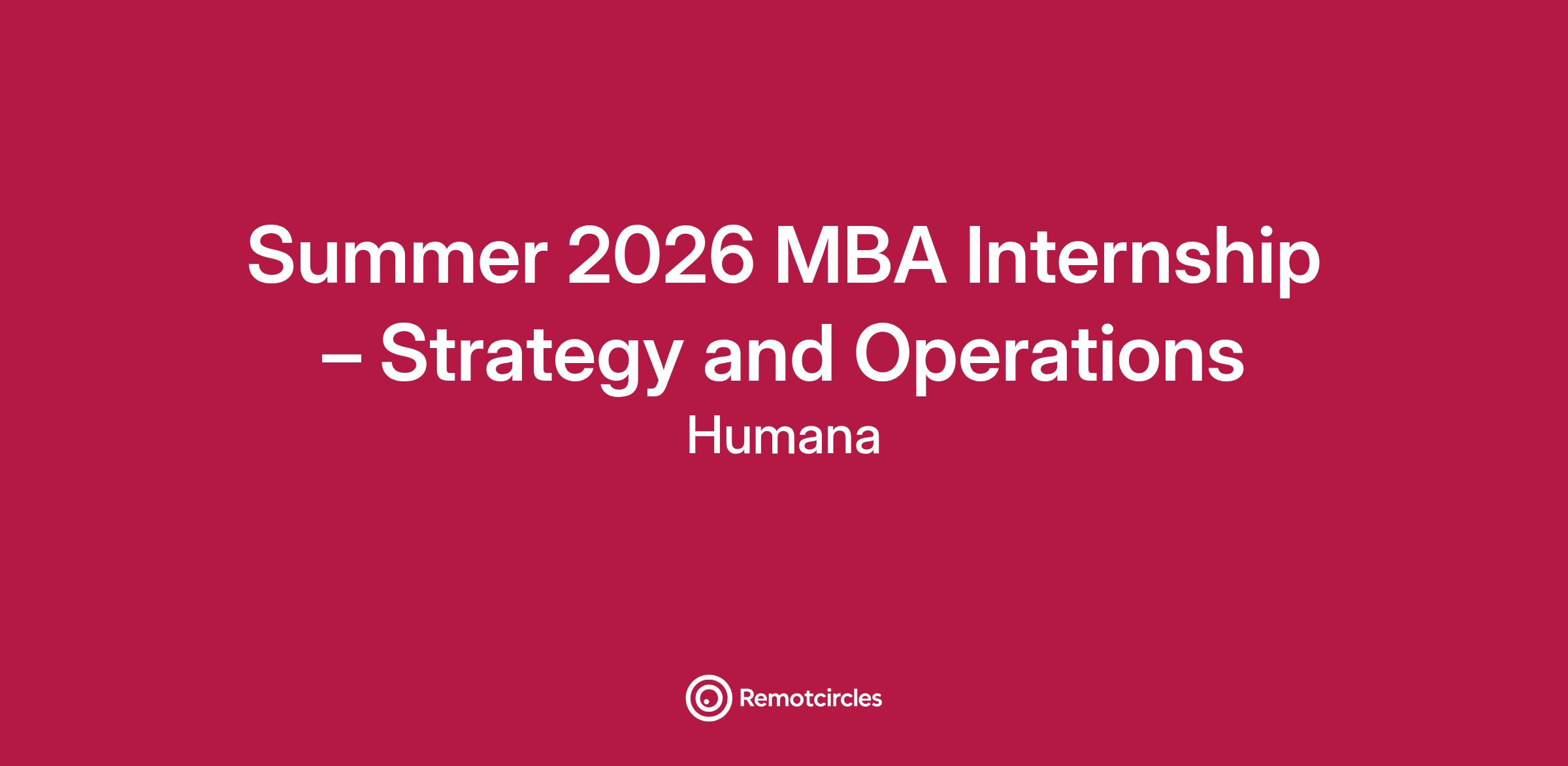 Humana is seeking MBA Interns to join for Summer 2026! Humana’s MBA Summer Internship Program offers a unique opportunity for MBA students to contribute to enterprise level initiatives across a range of business functions. Interns will drive strategic projects, gain exposure to executive leadership, and develop the skills and insights needed to launch a successful post-MBA or graduate school career in healthcare.